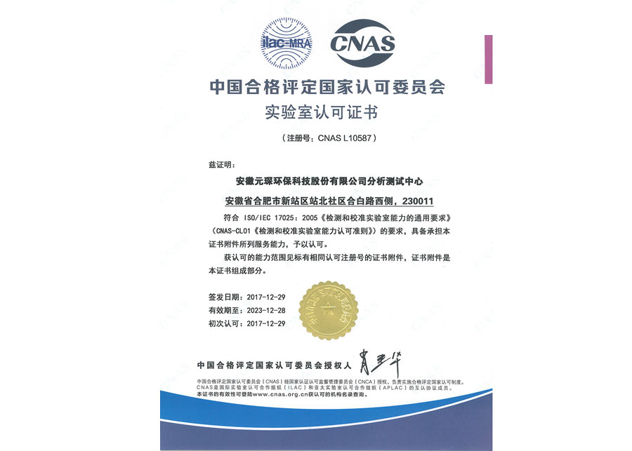 2017CNAS实验室认可证书