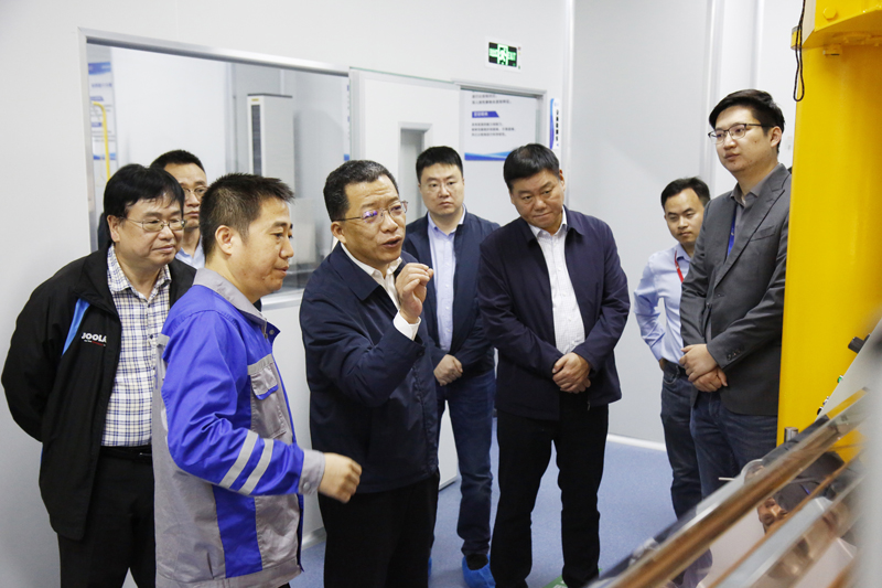 在参观过程中,铜陵市委书记丁纯对必一运动科技的高端滤料生产线及新项目材料生产给予了高度评价。他强调新材料产业的重要性,特别是环保新材料和新能源材料的双轮驱动,对改善环境和推动“双碳”目标实现具有重要意义。