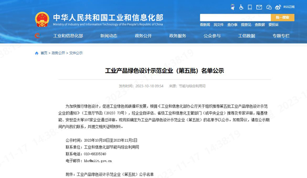 中华人民共和国工业和信息化部官方网站于10月18日发布了《工业产品绿色设计示范企业(第五批)名单公示》,经过初审筛选、复审答辩,必一运动科技成功获得工业产品绿色设计示范企业荣誉称号。