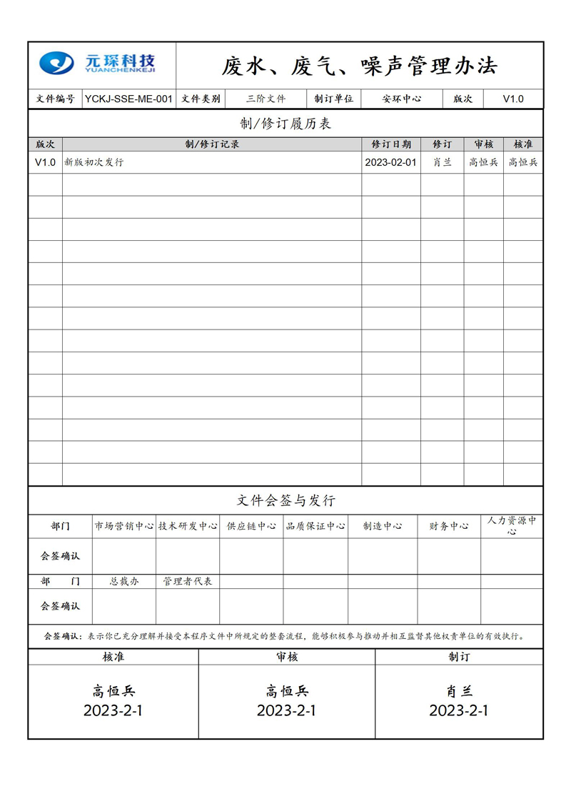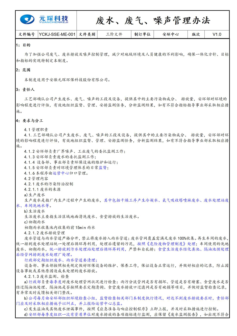 废水、废气、噪声管理办法