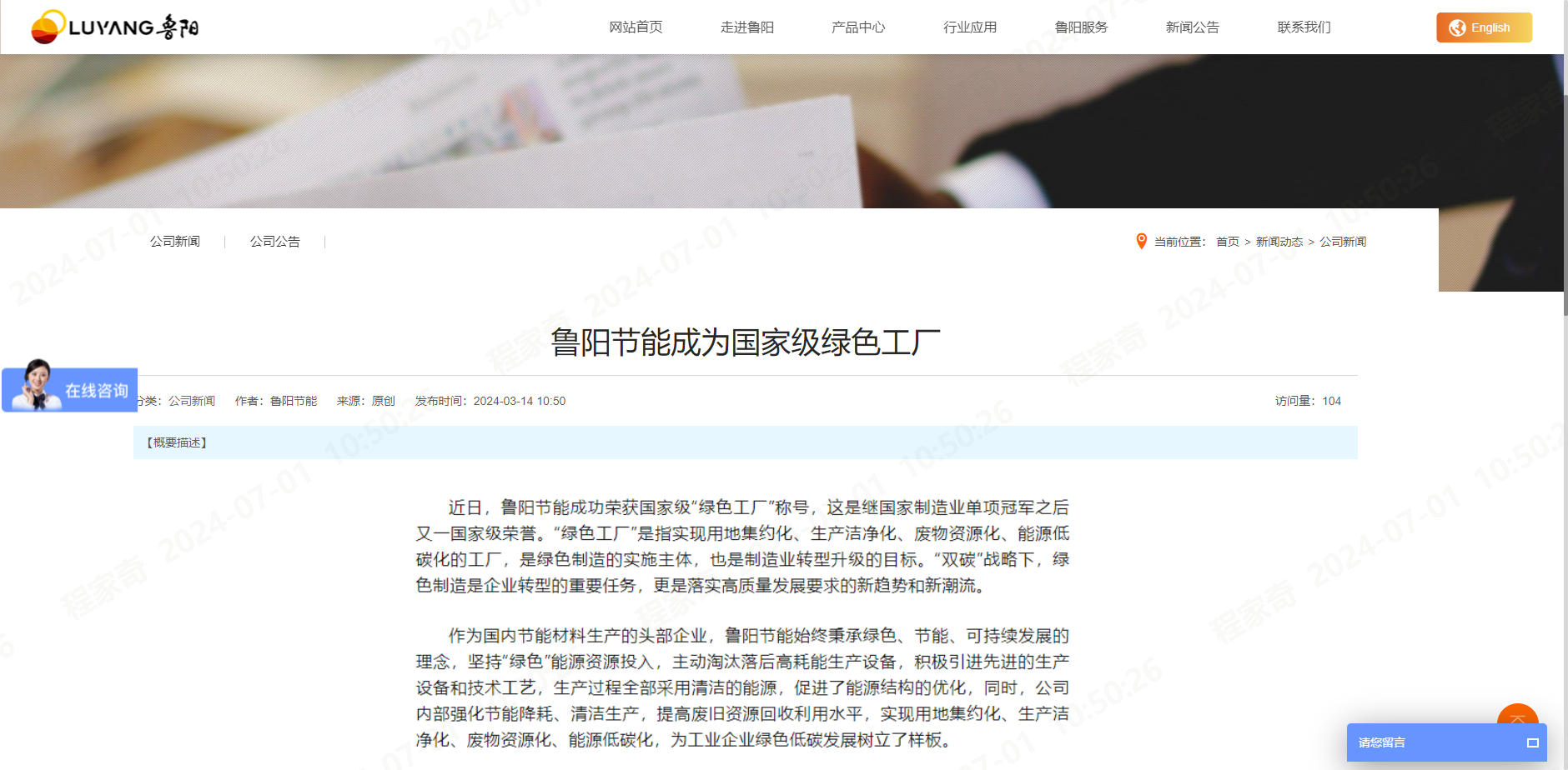 鲁阳节能成为国家级绿色工厂