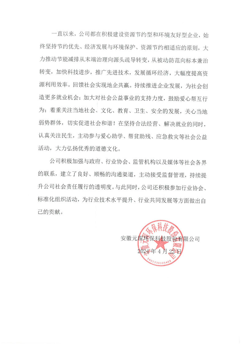 安徽必一运动环保科技股份有限公司2023年度 社会责任报告