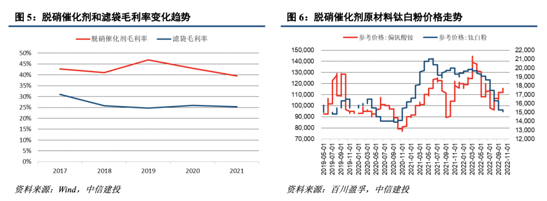 滤袋和催化剂都具备耗材属性,平均替换周期在3-4年。公司滤袋业务优势领域在电力和垃圾焚烧:电力行业价格因素占主导,公司市场份额前三;在垃圾焚烧领域,公司处于市场领先水平,凭借与垃圾焚烧最大厂商光大的深度合作积累了大量业务。公司催化剂业务优势领域在电力、钢铁、小锅炉:公司在区域性电厂和小锅炉领域市场份额前三,钢铁行业市场份额第一。